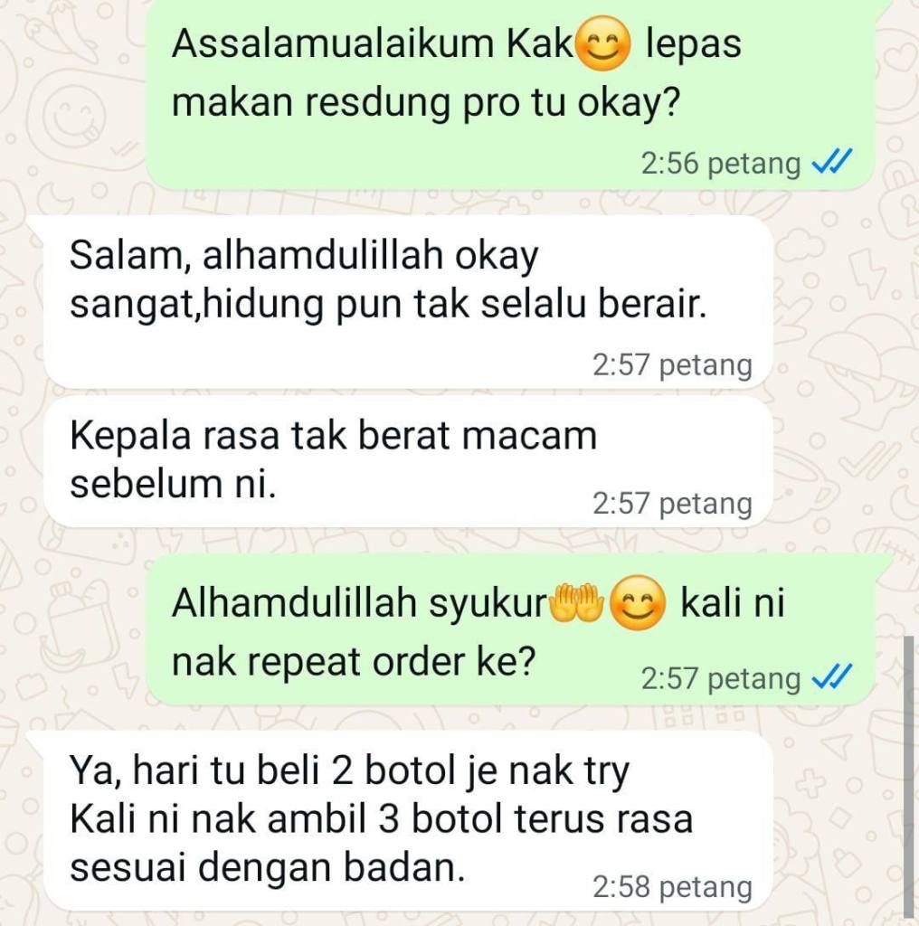 Lepas dah cuba Resdung Pro Kapsul NI, dah boleh buat aktiviti harian seperti biasa...